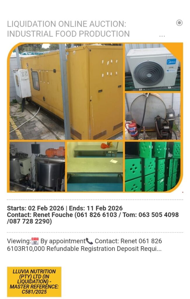 DAY 2 LIQUIDATION ONLINE AUCTION: INDUSTRIAL FOOD PRODUCTION PLANT